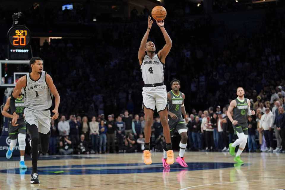 中场休息回来,双方进攻火力均是回暖,马刺本场第二次单节得分30+,但限制森林狼连续三节得分不足30分。马刺借助团队攻势在前4分多钟,逐步扩大69-50领先19分优势,森林狼连追6分,马刺重新扩大两位数领先优势。马刺单节30-29再赢1分,三节结束马刺扩大85-71领先森林狼。前三节比赛,马刺三分30中12,文班亚马24+7引领4人得分上双;森林狼三分28中8,爱德华兹14分引领4人得分上双。
